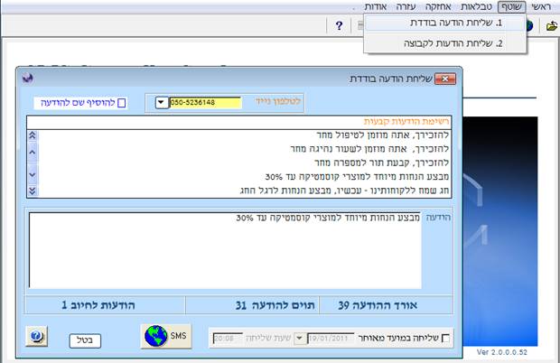 המסך הבא מציג לפניכם אפשרות לשליחת